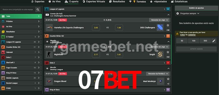 A aposta 07Bet oferece aos jogadores a experiência mais conveniente de apostas em eSports!